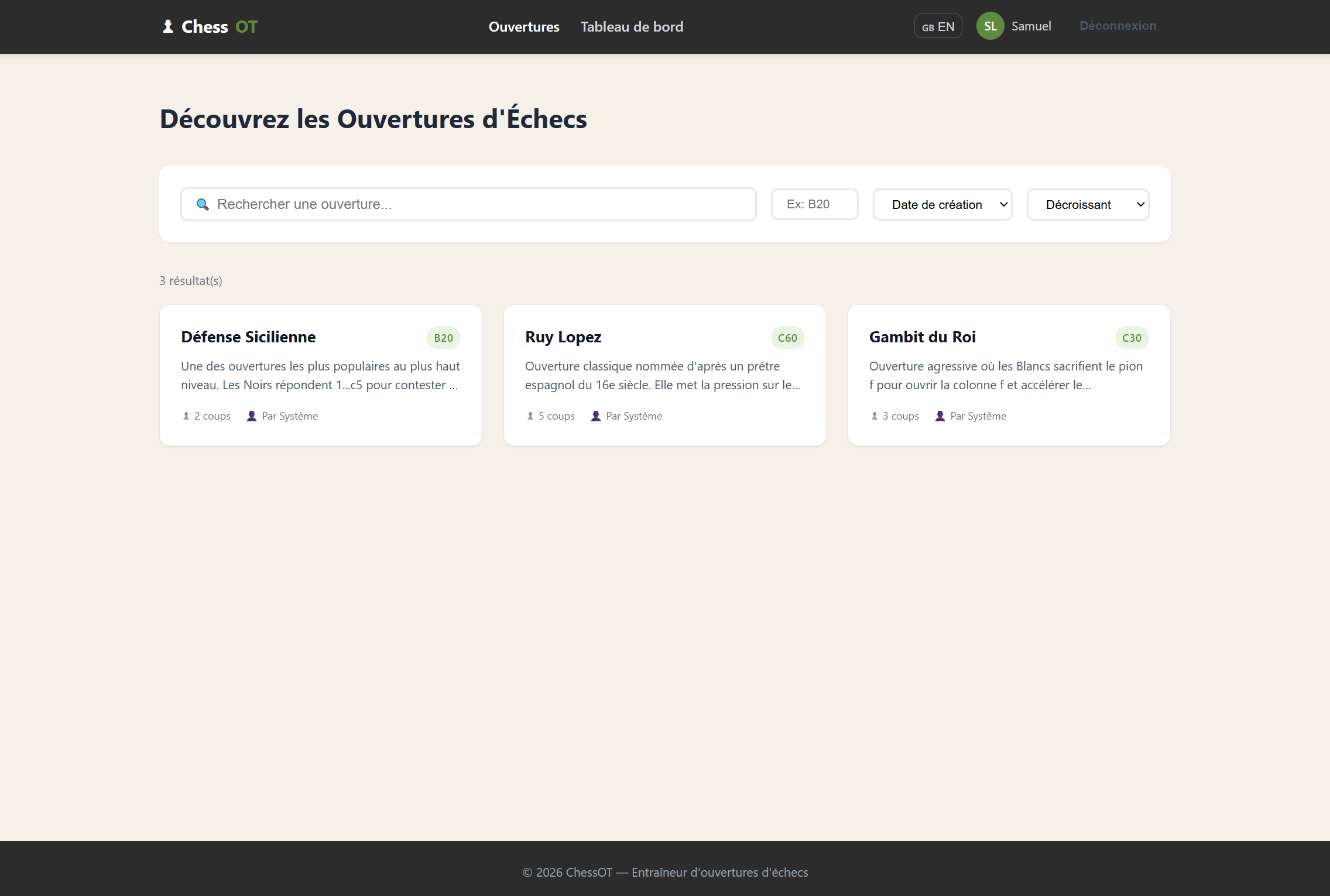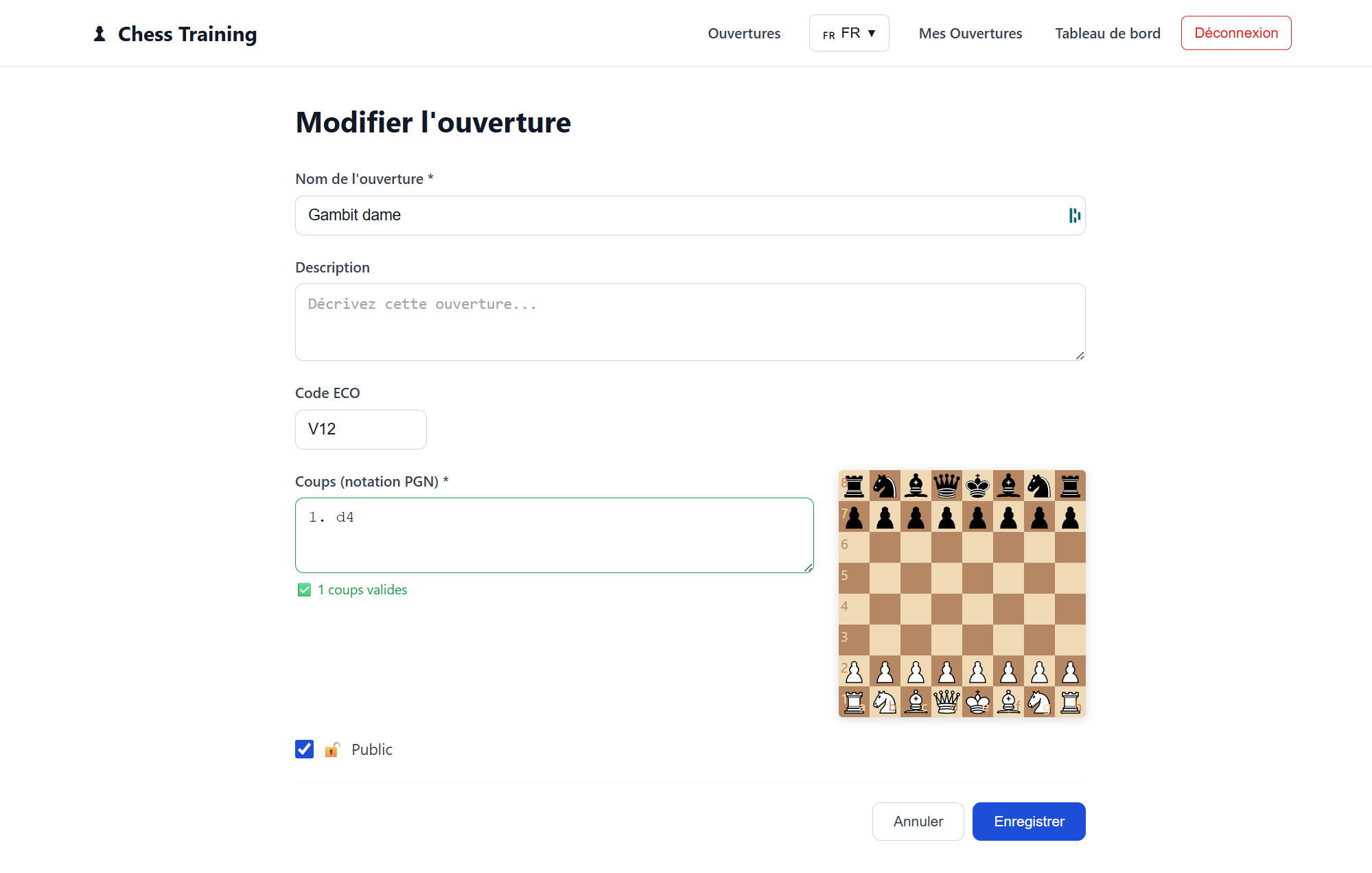 Point intéressant : aucune des deux générations ne propose d’éditer une ouverture en déplaçant directement les pièces sur l’échiquier, fonctionnalité que j’avais pourtant obtenue lors d’une première génération. Cela montre l’importance de la formulation des prompts et du contexte dans lequel l’IA travaille.